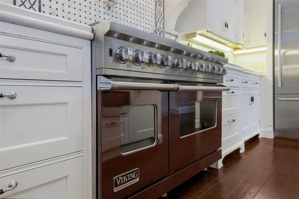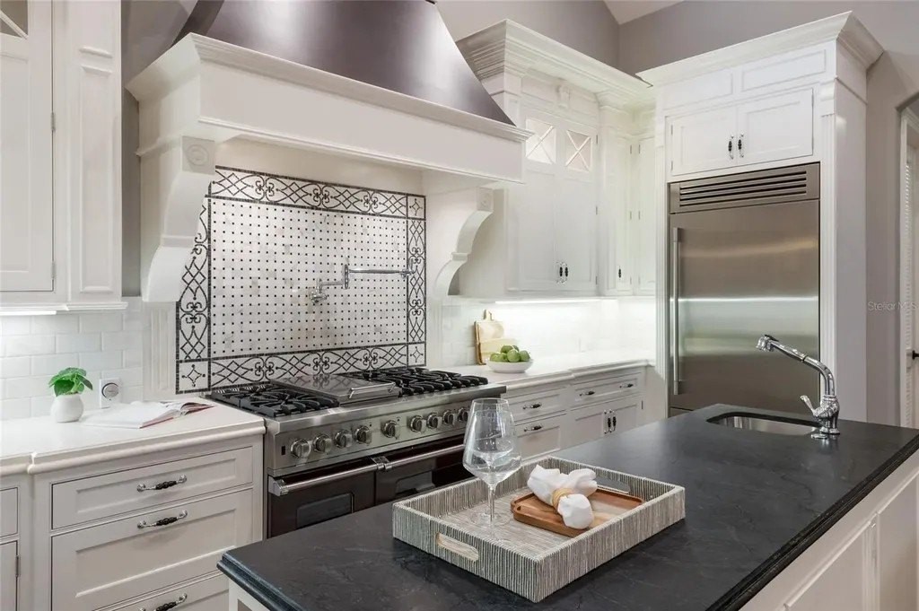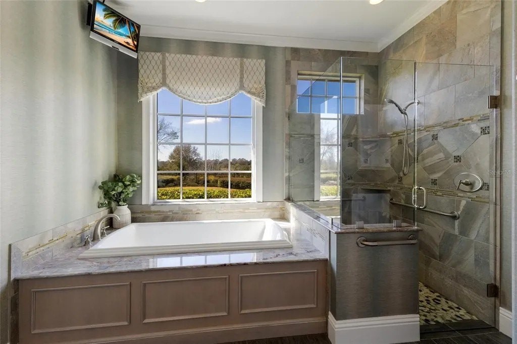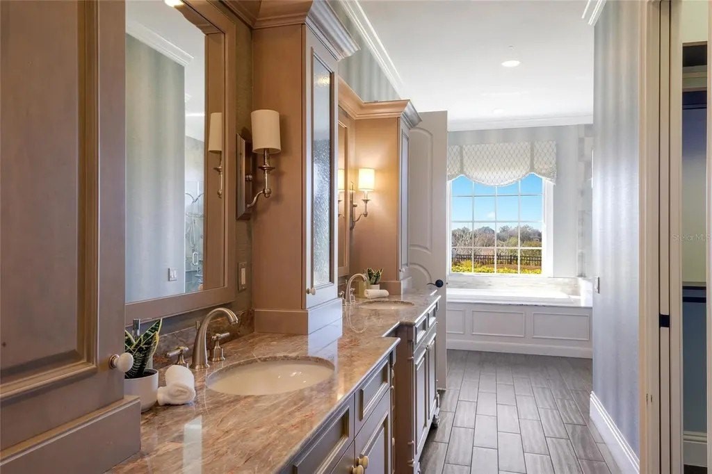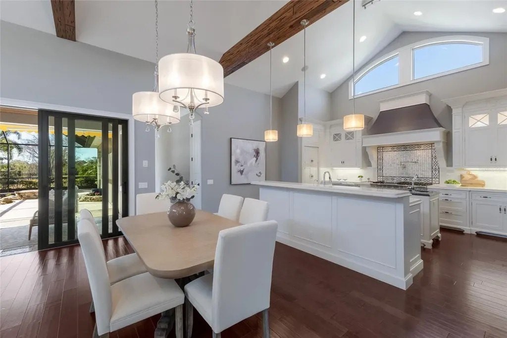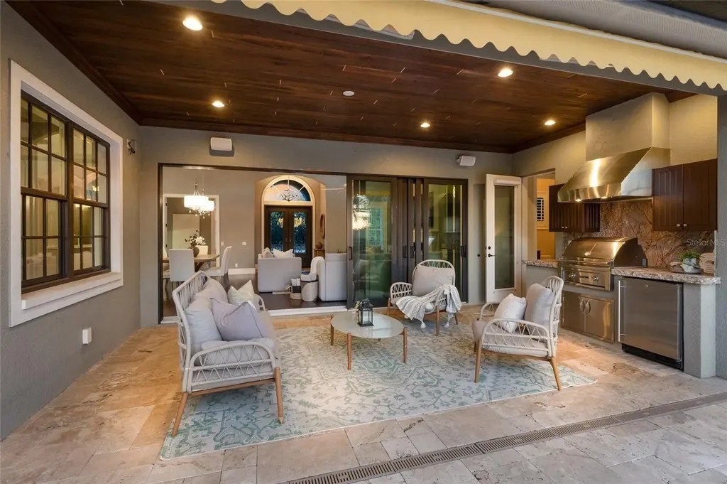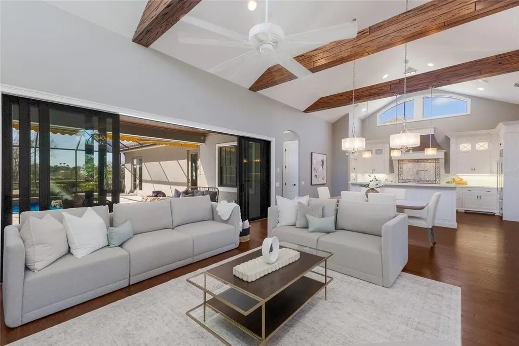 Perfectly proportioned to enjoy the pinnacle of luxury living inside the exclusive gated community of The Lake Club in Lakewood Ranch on .41 acre fenced setting overlooking a serene preserve delivering sunsets nightly. Custom designed by Paradise Homes, this attractively charming 2,585 square foot open one-story plan boasts magnificent curb appeal, inviting casita, volume beamed ceilings, decadent wood flooring, and even a GENERATOR. The private outdoor living area is adorned with travertine decking and cypress ceilings, with a lanai that showcases an outdoor kitchen with leathered granite counters, Viking grill, and U-line fridge, retractable awning, and a heated custom lagoon style pool with stone waterfall, zero beach entry and fire pit. Sliding impact glass doors seamlessly connect the outdoors to an expansive great room and dining area with cathedral beamed ceilings, transom windows, and feature wall with cabinetry and gas fireplace to enhance the open continuity of space. Chefs and guests alike will delight in the well-appointed kitchen with Carrara marble backsplash with mosaic and subway tile, high performance appliances, Viking six-burner range with griddle and two ovens, pot filler, 2025 Fulgor refrigerator, 2023 microwave drawer, U-line wine refrigerator, two islands, and hidden walk-in pantry. Relax and unwind in the elegant owner's retreat offering tray ceiling, crown molding, direct access to the lanai, wood flooring, plantation shutters, two customized walk-in closets, and a luxuriant bath with a large dual sink vanity with abundant storage and marble counters, plus a large soaking tub and separate shower. Overnight visitors will be right at home in the additional guest suite in the main house adjacent to the pool bath or in the private and intimate casita off the lanai with its own private full bath. Additionally, the residence offers a spacious study/den in the main house off the great room with built-in office with granite counters, cabinetry, wood flooring and plantation shutters. Other notable highlights of this all-encompassing 3,814 total square foot residence includes a impact windows and doors, 20kw Generator, 2025 tankless water heater, 2020 Trane A/C with 3 zones, solid interior doors, brilliantly finished laundry room with sink and cabinetry, drop zone area off the garage entry, a fenced backyard, landscape lighting, speakers, and a spacious three car garage with epoxy flooring, storage cabinets and an air-conditioned storage room. This special offering beckons a lifestyle fulfilled in The Lake Club, where residents enjoy access to a wealth of amenities, including two resort-style heated pools, Grande Clubhouse with fine dining and bar area, a fitness center, spa, tennis courts, pickleball, a playground, dog park, and services of a full-time concierge and activities director.